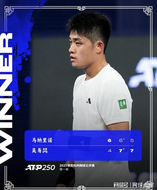 在杭州公开赛的赛场上,吴易昺与法国选手马纳里诺上演了一场长达2小时51分钟的马拉松大战。在先丢一盘的不利情况下,吴易昺展现出了顽强的意志品质,虽然第二盘抢七取胜后又在决胜盘浪费了一个发球胜赛局,但他最终还是以4-6 7-6 7-5的比分完成逆转,赢得了这场来之不易的胜利。