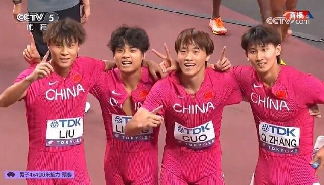 北京时间9月20日,东京田径世锦赛男子4x400米接力预赛,由梁宝棠、张起宁、刘凯和郭龙宇组成的中国队跑出3分00秒77,将国家纪录提升一秒多,排名第一组第五位。