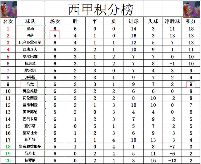 西甲最新积分战报压哨绝杀5轮不败马竞差皇马9分暂升第9