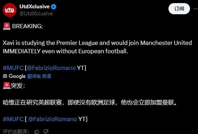尽管自弗格森爵士退休以来,俱乐部一直表现不佳,但老特拉福德仍然是许多知名教练向往的地方,据报道,哈维会欣然接受执教曼联的机会。知名转会记者罗马诺表示,哈维一直在“研究”英超联赛,如果曼联提供帅位,他将“立即”接受这份工作。报道还补充说,缺少欧洲赛事并不会阻止这位前巴塞罗那主帅、一代传奇中场成为曼联主帅。