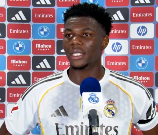 雷速体育10月5日讯 西甲第8轮,皇马坐镇主场3-1击败比利亚雷亚尔。赛后,皇马中场楚阿梅尼在混合采访区接受了采访。