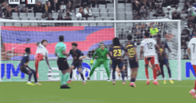 补时阶段弗里克被罚下场。第93分钟,神奇的一幕出现了,替补登场出任中锋的阿劳霍接到德容的传球,上演莱万多夫斯基方式的破门。