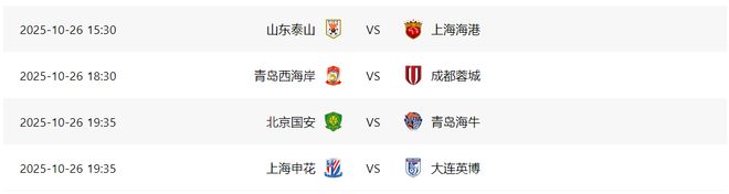 中超第28轮即将开打,本轮将迎来一场焦点战,青岛西海岸主场迎战成都蓉城,鉴于本场比赛的重要性,CCTV5+将在10月26日18:30现场直播本场比赛。