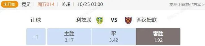 竞足 周五014 英超 利兹联VS西汉姆联