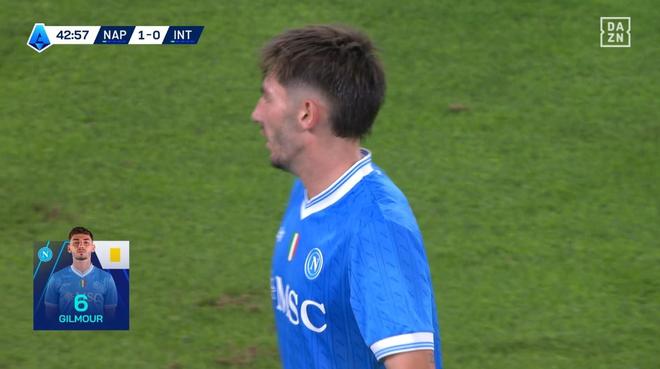 比赛的转播画面和意甲官网的文字直播原本都显示吉尔摩在第43分钟飞铲恰尔汗奥卢犯规吃到黄牌,随后第46分钟这位苏格兰球星又拉倒邓弗里斯破坏国米反击再次染黄,正当人们困惑为什么当值主裁马里亚尼没有向吉尔摩出示红牌的时候,意甲官方随后对他们的文字直播内容进行了更正,他们将第一张黄牌的得牌球员更改为了迪洛伦佐。
