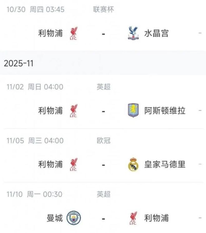 - 英超 | 压力堆满:斯洛特利物浦遭遇联赛四连败,接下来连战苦主曼城皇马