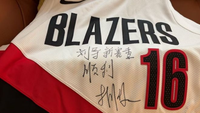 刘维伟也是晒出了杨瀚森给他签名的开拓者16号球衣,上面写道:“刘导,新赛季顺利,杨瀚森。”