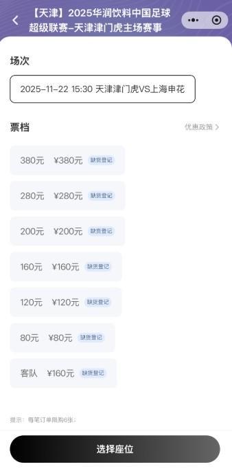 于根伟:“今天中午开票了,可能20多分钟售罄。其实我觉得对我们来讲,倒不意外,之前也预料到了,因为这场比赛的关注度,除了天津本市的广大球迷关注之外,可能全国各地的还有好多球迷都比较关注。我了解,可能是系统的问题,要不然的话,可能五六分钟基本上就都售罄了。”