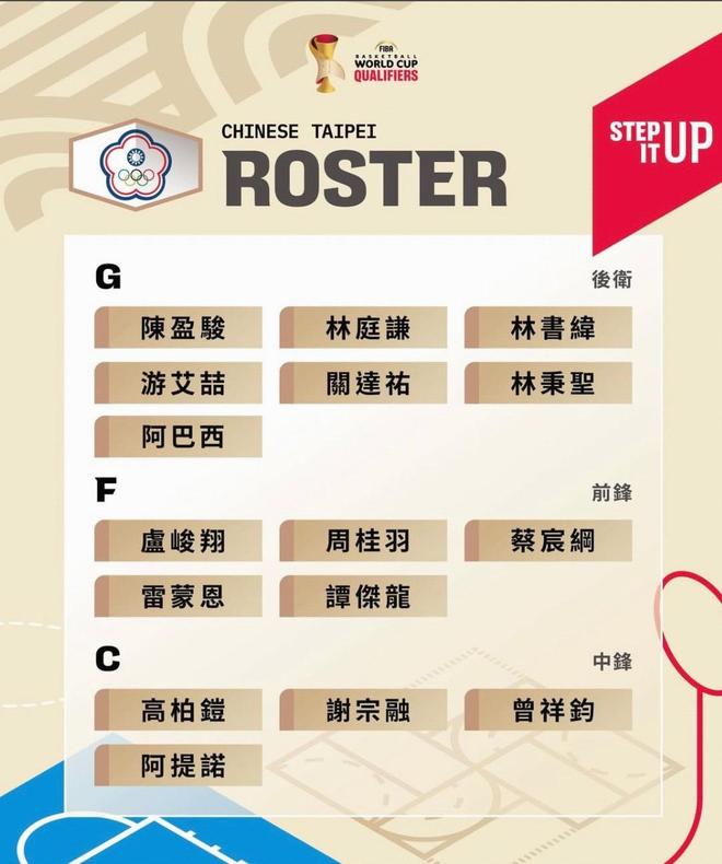 北京时间11月20日,中国台北男篮公布了世预赛球员名单。