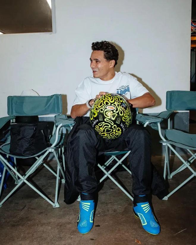 想要更有质感和风格,就和Norris一样,拿T恤搭配赛车款就行。