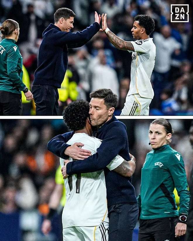 赛后,拿下比赛暂时保住帅位的阿隆索抱住罗德里戈,少帅的面部管理甚至都已经失控。这其实也很正常,没有罗德里戈的连场进球,现在的他大概率已经是皇马的前主帅。关键是,之前阿隆索对罗德里戈并不感冒,算上最近2场比赛,后者本赛季也只首发了区区6场。他之所以遭遇长时间进球荒,也跟出场时间零零散散影响状态有直接关系。然而,如今罗德里戈却用进球拯救了阿隆索,这就是传说中的以德报怨吧。
